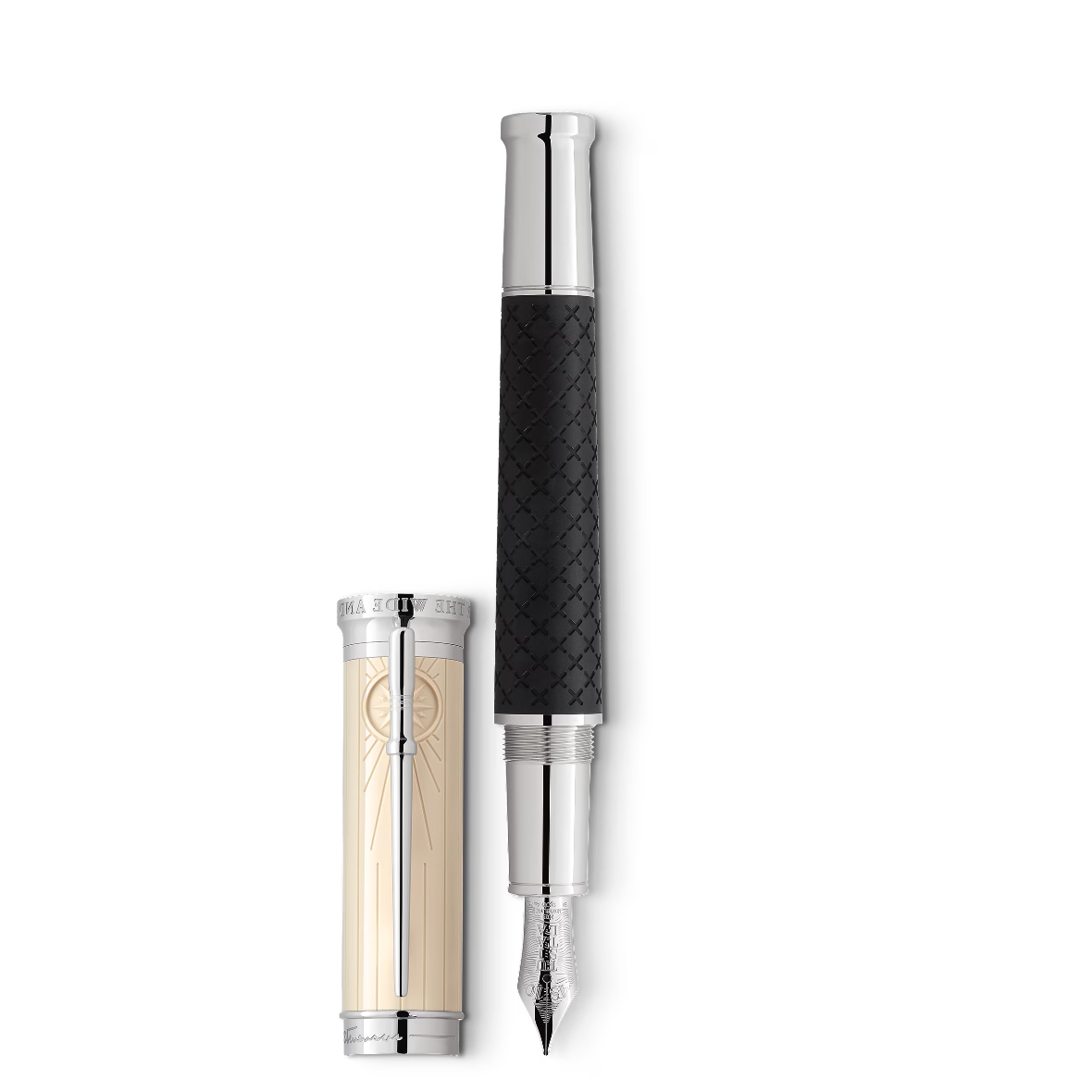 Nato ad Edimburgo, Scozia, nel 1850, Robert Louis Stevenson desiderava ardentemente due cose: la libertà e lo svago di tuffarsi in un altro mondo. Scrisse saggi e racconti di viaggi, nonché le sue leggendarie storie d’avventura popolate di personaggi straordinari, i cui nomi facevano venire i brividi ai lettori di tutto il mondo: Long John Silver, il Capitano Flint, il dottor Jekyll e il signor Hyde. La Montblanc Writers Edition Homage to Robert Louis Stevenson è dedicata a questo narratore estremamente creativo. Molti dettagli decorativi di questa edizione sono ispirati al romanzo “L’isola del tesoro”. La forma complessiva dello strumento da scrittura, unita agli anelli sul cono, ricrea l’effetto di uno storico cannocchiale allungabile. Il corpo in pregiata resina nera è decorato da croci incise, compresa una “X” più grande simile a quella che si usa per contrassegnare la posizione di un tesoro su una mappa. Il cappuccio della Writers Edition è ornato da linee verticali che richiamano le tavole della goletta “Hispaniola” e da un tradizionale forziere. Dietro alla clip finitura platino, le linee convergono a creare una rosa dei venti, mentre la clip riproduce la forma di una galloccia, alla quale vengono fissate le sartie della nave. La parte superiore del cappuccio è coronata dall’emblema Montblanc, decorato con il simbolo dei pirati - un teschio con le ossa incrociate - elevato al centro. L’anello del cappuccio è ornato dall’incisione della firma di Stevenson, e dalla data di pubblicazione della sua prima opera, “The Pentland Rising”, nel 1866. Gli anni di nascita e morte di Robert Louis Stevenson (1850-1894) sono incisi sul cappuccio. In omaggio alla passione di Robert Louis Stevenson per la navigazione e alla sua scelta di trasferirsi nei Mari del Sud, il pennino in oro massiccio Au 750 finitura rodio, lavorato a mano, reca l’incisione di un delicato motivo a onde e del nome che i samoani diedero al grande scrittore e giramondo: “Tusitala”.