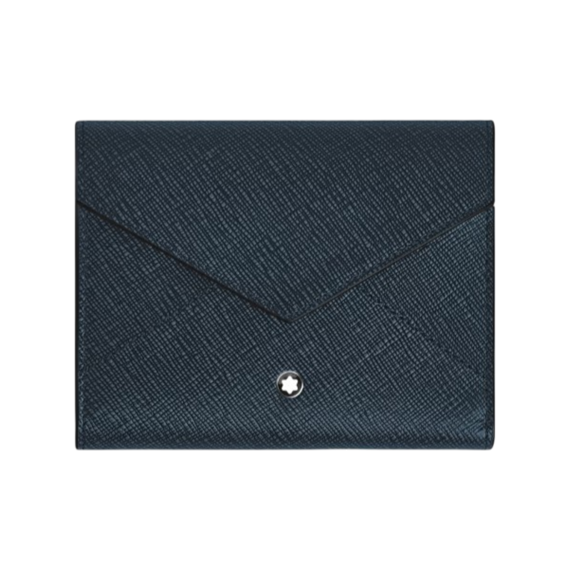 Portafoglio Montblanc Trifold Envelope collezione Sartorial con 6 scomparti color tweed blu.. Realizzato in pelle Sartorial goffrata in una raffinata combinazione bicolore di blu e nero classici, questo portafoglio trifold è elegante e al contempo pratico. Pensato per essere riposto comodamente in tasca, l’apertura con fibbia rivela una tasca con cerniera per riporre al sicuro monete e chiavi, sei aperture per carte di credito, uno scomparto per banconote e due tasche aggiuntive per spazio extra.