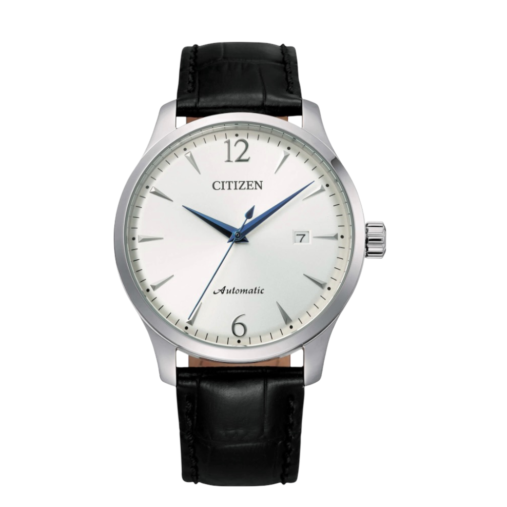 Cassa in acciaio. Fondo con oblò trasparente e rotore a vista. Cinturino in pelle. WR 5 bar.