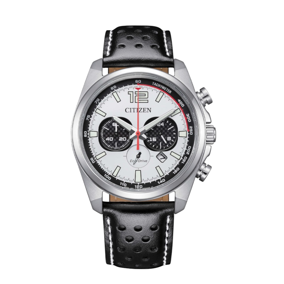 Eco Drive a carica luce con riserva di carica di 270 giorni.